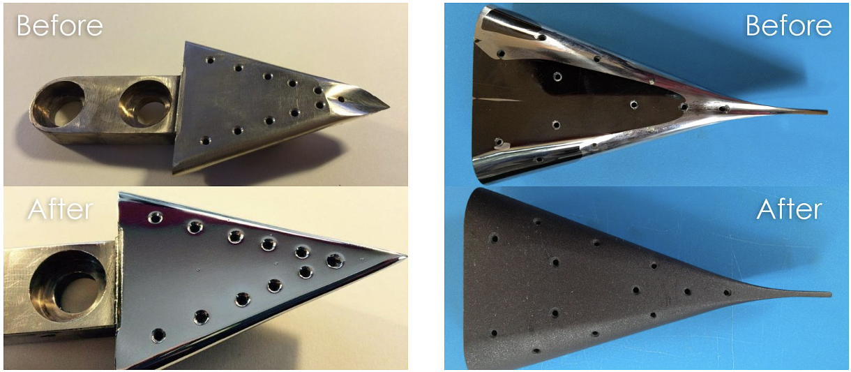 MGF uses high precision and superior coatings with a proven track record of considerably longer life than that of what the OEM and other competitors are providing. Our number-0ne-rated coating is Ceramic/Teflon coating, which provides excellent protection for more than 600 million impressions. Ceramic/Teflon coating is available for Steel and Aluminum former noses. Shown in this photo is our Hard Chrome with precision polish after reconstructing the profiles.